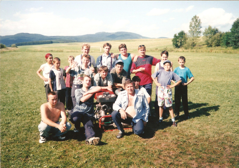 Mladí hasiči okolo svojej hasičskej mašiny