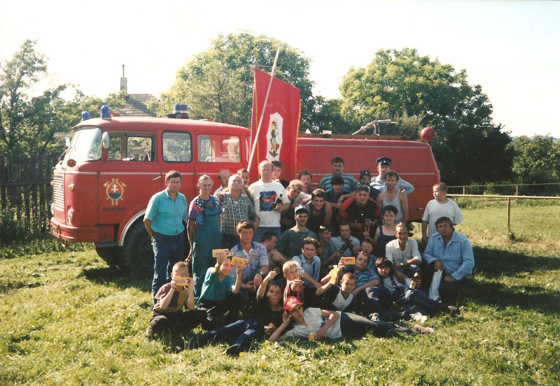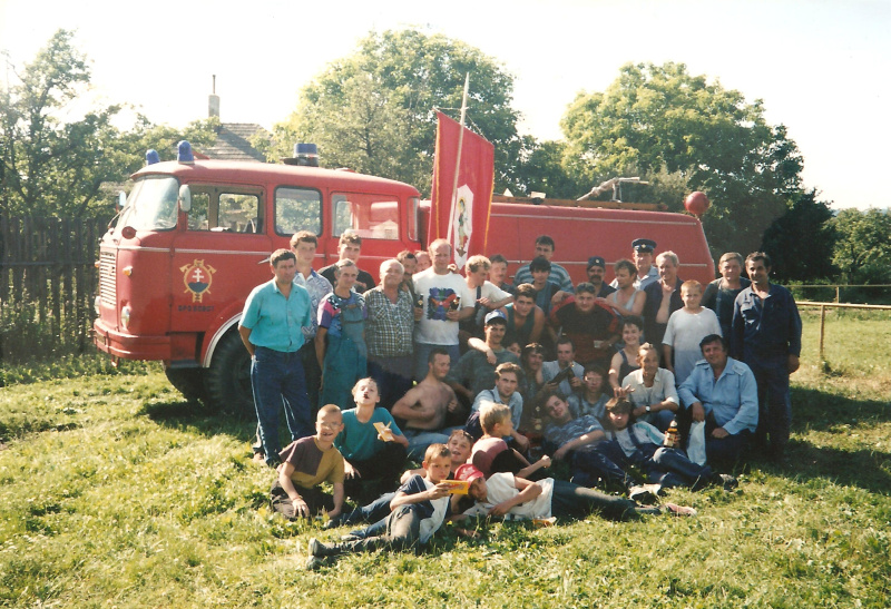 Hasiči pred požiarnym autom