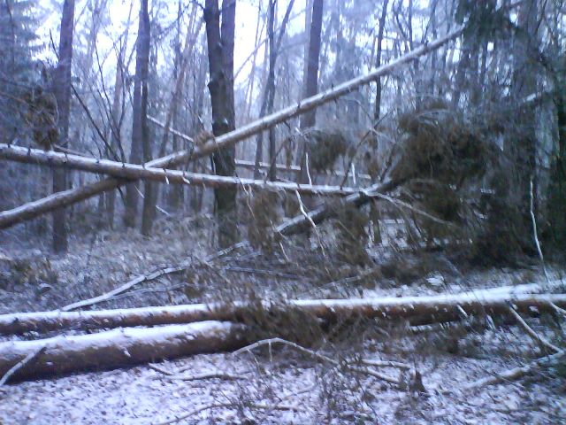 Kalamita v roku 2007. (Poškodenie našich lesných porastov pri kalamite v roku 2007. Vyťažených bolo viac než 2200 kubíkov kalamitného dreva.)