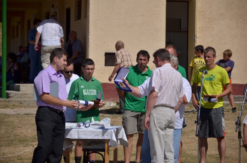 Kapitán mužstva mužov TJ Tatran Bobot Peter Poláček preberá ocenenie za reprezentovanie obce od starostu pána Ľubomíra Tunegu