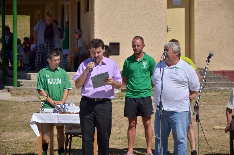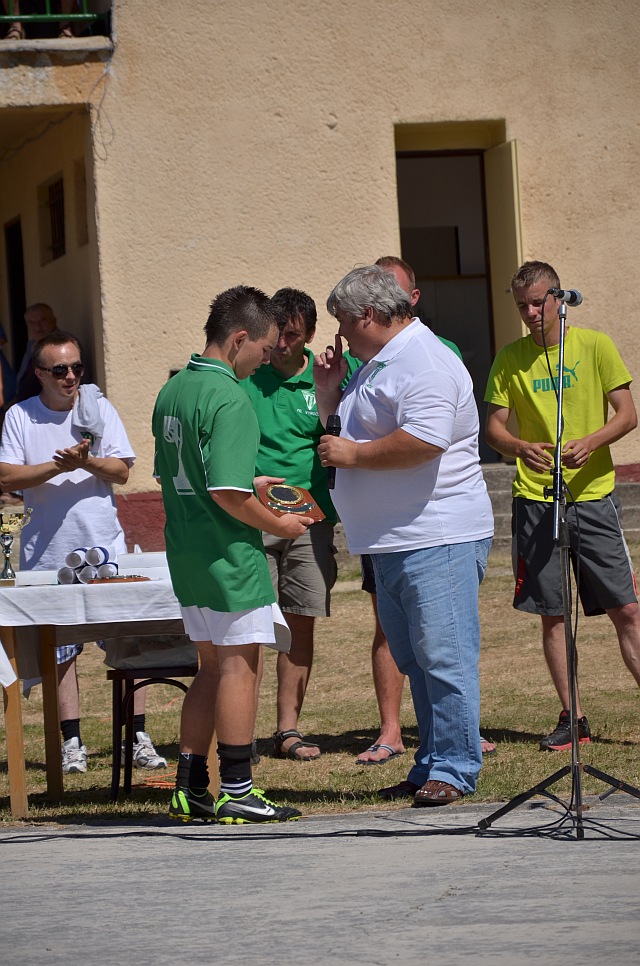 Kapitán mužstva žiakov TJ Tatran Bobot Michal Bučko preberá ocenenie za reprezentovanie obce od starostu pána Ľubomíra Tunegu