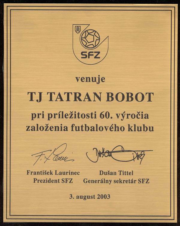 Pohľad späť: 60. výročie založenia TJ Tatran Bobot - 3. August 2003 (História Tatranu Bobot)