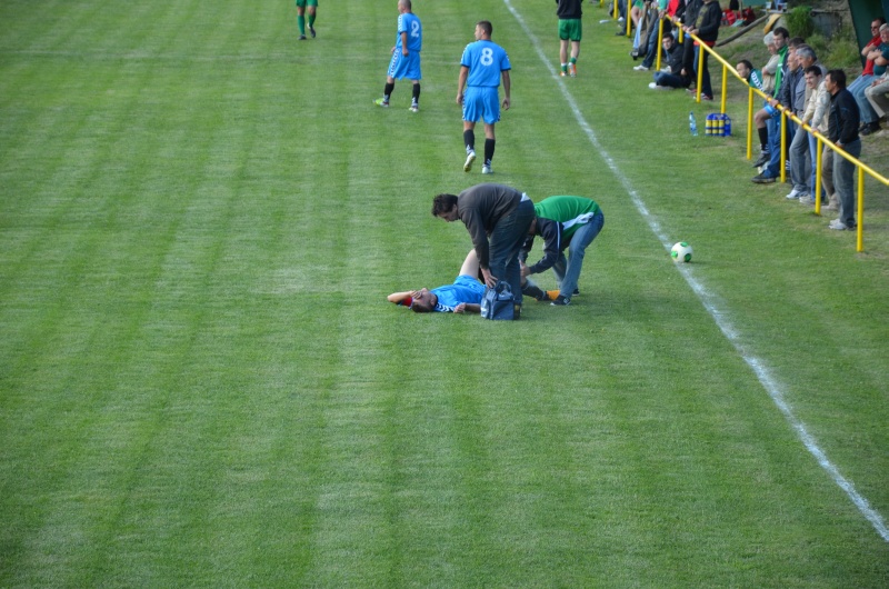 Domáci kapitán pri ošetrovaní svojho zranenia