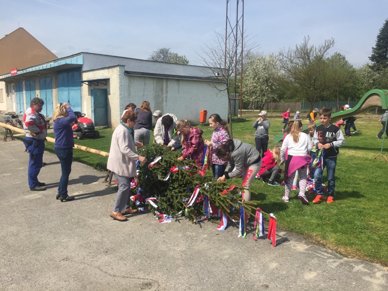 Zdobenie mája 2015 (Dňa 30.04.2015 na pozvanie p. starostky obce Bobot žiaci našej školy krásne vyzdobili máj pestrofarebnými stužkami)