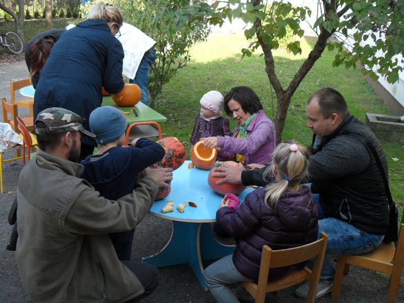 Rodičia s deťmi si vyrábali strašiakov
